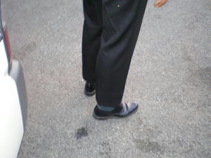 あれ~短い そして短い されど短い 歩く度に靴下の上の足の肌が見えて超おもろい・・・・・しかも礼服のズボン
